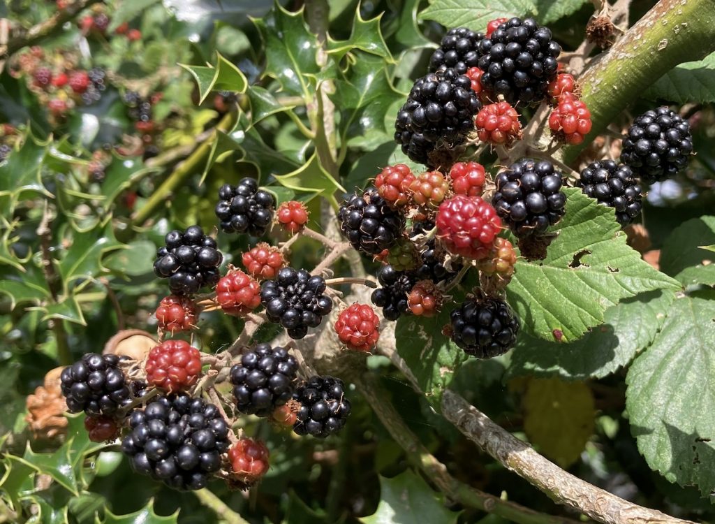 Over 320 ‘microspecies’ of bramble have been identified and recorded, with up to an estimated 200 yet to be documented – more info here www.bsbi.org.uk/Rubus_Crib.pdf. Connoisseurs have even detected the subtleties between these varieties – fruiting time, size, texture and taste (hints of plum, grape, apple or lemon).